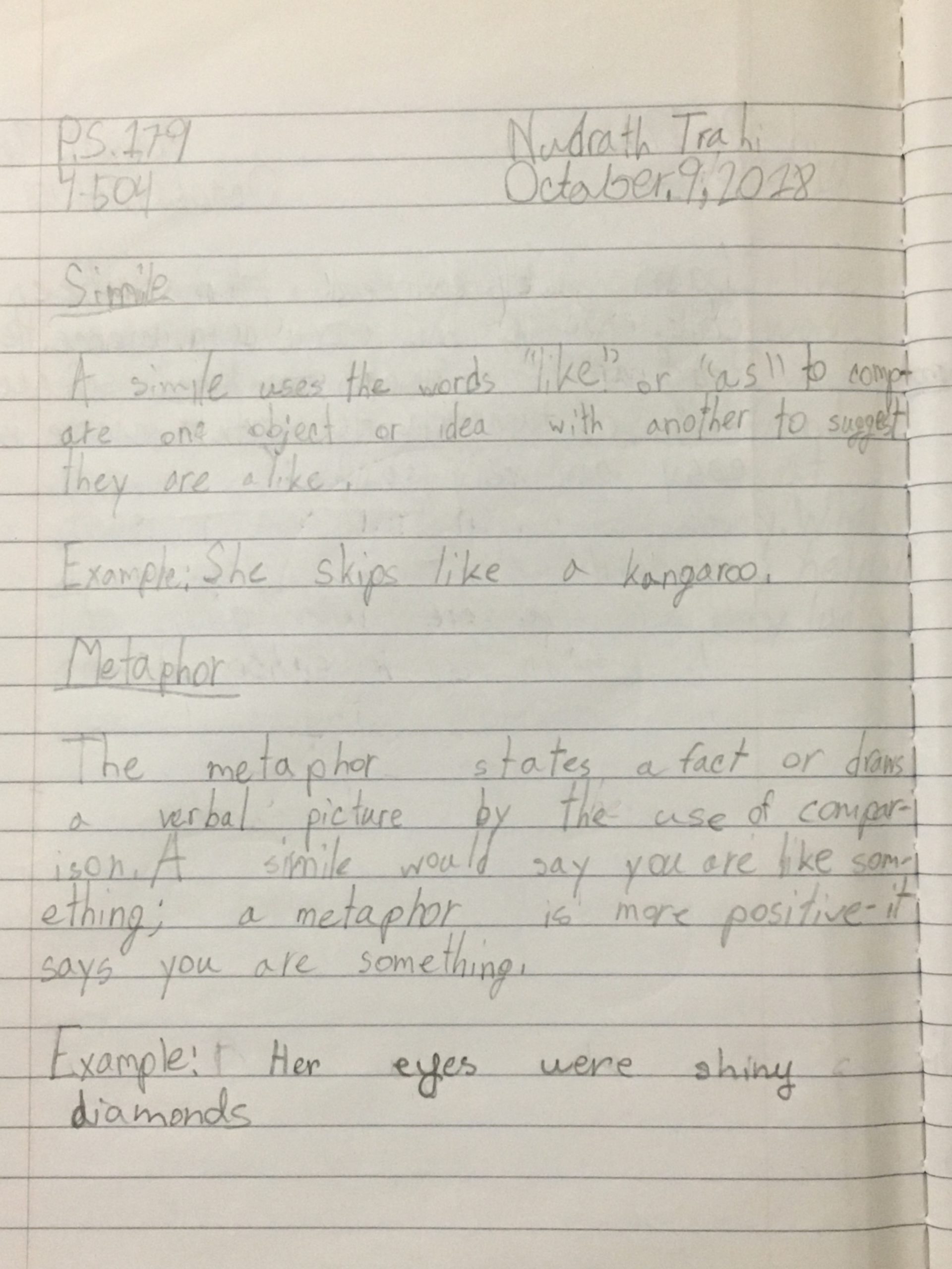 A Simile uses the words “like” or “as” to compate one object or idea with another to suggest they are alike.